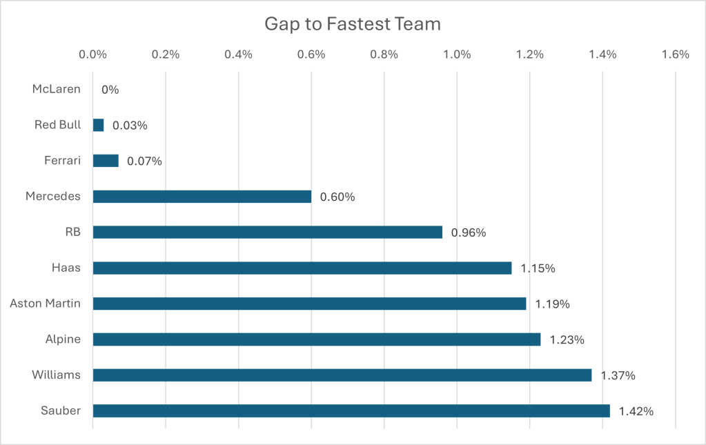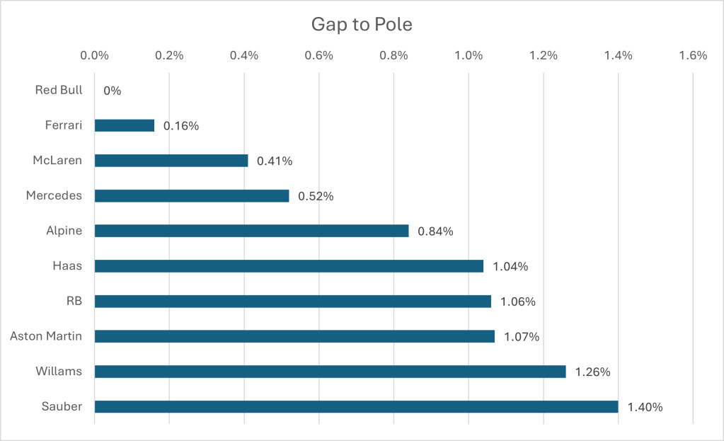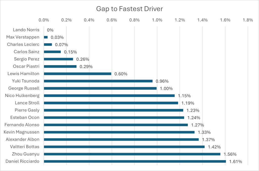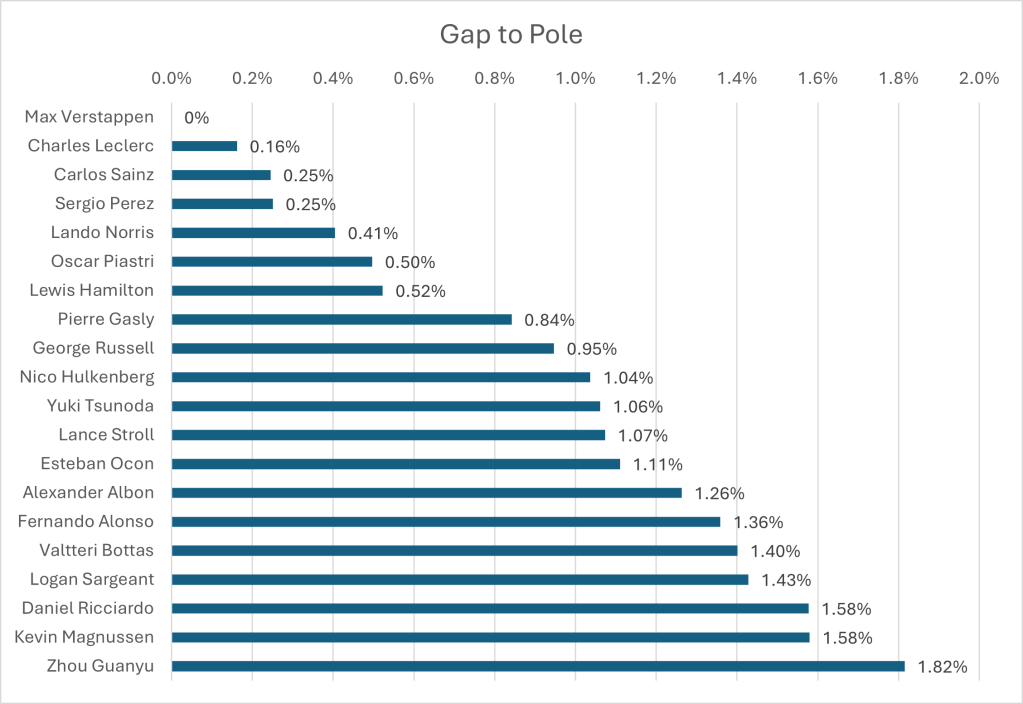 I have collated the fastest laps by each driver in qualifying, to show the average gap to the fastest driver. Whilst this extends the gap between drivers who made it to the top ten and those below, I’ve ruled using the overall fastest times a better grounding point for the true limit of the top cars, as the cars most likely to compete for points are my primary focus in these analyses.